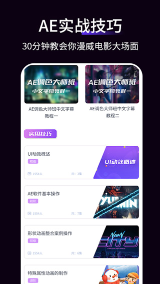 操作起来也超级简单,界面设计得清爽又直观。如果你是新手也没关系,软件里还有各种教程手把手教你,从入门到高手都能在这里找到适合的学习内容。特别是那些实时更新的AE插件和课程,对于想提升拍照技术的人来说简直是宝藏!