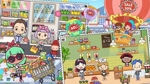米加小镇商店就像一个大型的购物商场或者超市!您可以在其中装扮您的角色,让它们玩耍或者休息!我们推荐您在不同场景地点拖动物品或者人物来创建自己的使用方式。