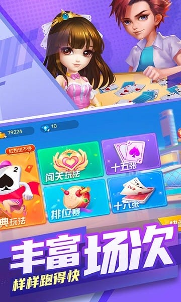 指尖跑得快app是一款趣味十足的扑克竞技手游,以经典跑得快玩法为核心,支持三人或四人同场对战。游戏采用单副牌规则,去除了大小王,玩家需通过快速出牌、巧妙组合牌型(如顺子、连对、炸弹)争夺先出完牌的胜利。其特色在于节奏明快,单局时长短,适合碎片时间娱乐。游戏内置智能匹配系统,可与全国玩家实时对战,并设有排行榜、成就系统及方言语音互动,增添竞技趣味性。