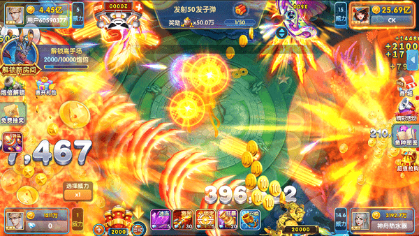 游戏中有多种大炮可供选择,如基础炮、连发炮、范围炮等,还有全新技能,如锁定、点击、召唤和冰冻等,可帮助玩家更轻松地捕获鱼群,享受捕鱼的酣畅淋漓。