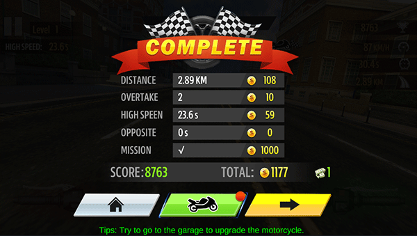 6、所获得的金币奖励可以用来解锁炫酷的摩托车或者升级摩托。
