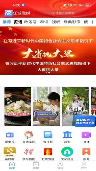 任城融媒体中心app是一款专门服务于任城区市民的应用,软件从新闻、电视,到政务、生活,方方面面都涉及了,市民只需一个app就可以解决很多问题,比如政务办理,能直接在软件中申请;日常生活缴费,也能在app中直接完成;就连党员学习还是可以,有灯塔党建、学习强国专区。