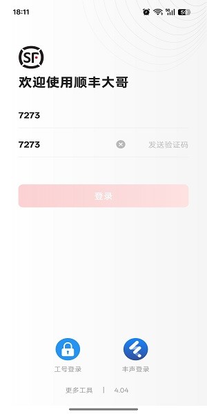 打开顺丰大哥app后,默认是顺丰小哥app的账号登录;下面可以切换手机号或者丰声登录;