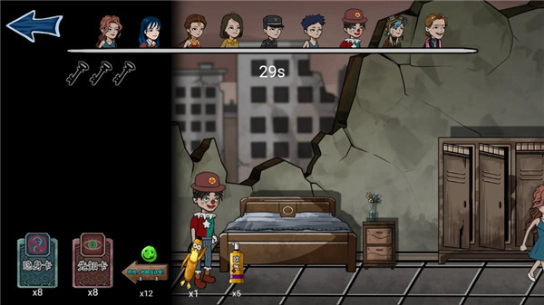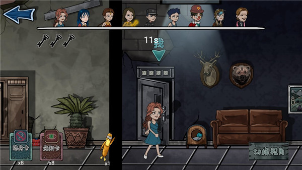 2、这个模式跟以往不同,道具是随机的,进入游戏后上边的镰刀是代表屠夫可以抓10次,也就是说你要躲避10次才可以过关。