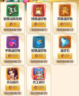 友情商店里每日限购的内容是铜钱,附魂石和宝物附魂石都是每周限购的哦。