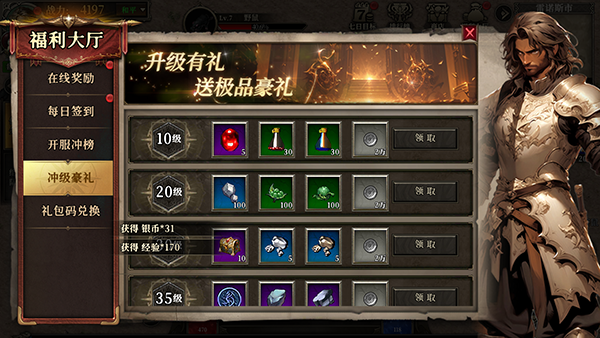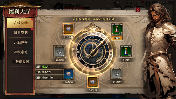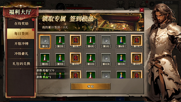 2、在线奖励,保持在线领取。