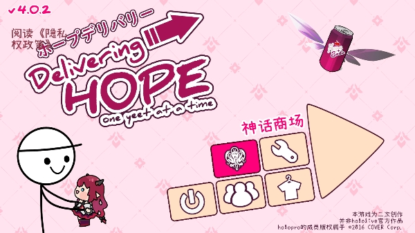 2、开发人员不支持hololive、COVER Corp或其任何人才,也不隶属于该公司。所有holopro人才版权所有2016 COVER Corp.