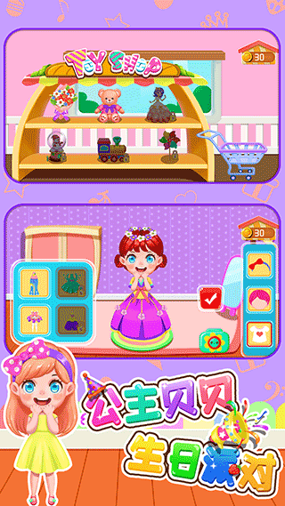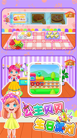 以公主贝贝生日派对玩法为主题,为公主贝贝设计一个热闹生日派对,内容有食材准备、美食制作、做饭、换装打扮、化妆美发、舞会装扮、生日聚会、生日礼物、生日卡、生日祝福等多样化的生日派对活动,让小朋友们在生日派对中玩的快快乐乐。