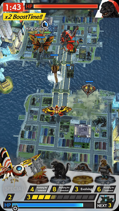 总的来说,《哥斯拉战线2025》不仅玩法丰富,而且充满了怪兽大战的经典元素,特别适合喜欢这类战斗策略游戏的玩家。3分钟一局的设计也很贴心,随时随地都能来一盘,根本停不下来!