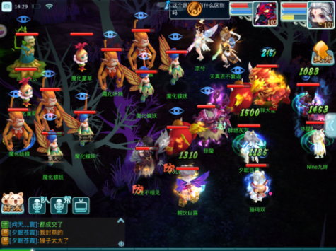 打法介绍:这一关一上一关整体一致,但是难度更大,且主怪会召唤。首先回合开始蝶妖给全体独家附加狂暴buff增加攻击,一轮下来的伤害还是不少的。五灵控场,我们采取的是优先击杀部分小怪,等数量减少后再采取群攻,不要太早就开始群,毕竟小怪血量还是不低的,而且太早将主怪血量打下来也不利于我们。