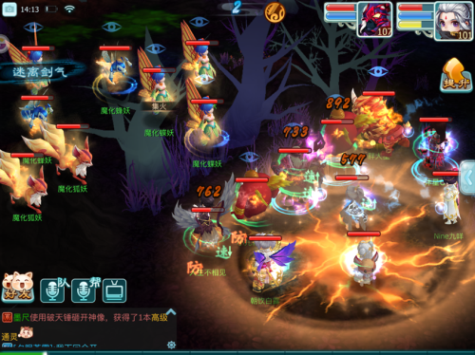 我们在通关的时候采取的是清小怪的打法,这样的打法会出现的局面是,当所有小怪都死后,童草攻击骤升,乱刃的伤害达到1-2w之间,基本上一轮下来没有神佑情况出现的话会趴掉一片。如果想采取这种打法,需要及时的集火主怪,避免遭受二次乱刃,主怪在被集火至血槽空后会自爆,战斗也自然结束,通关。这种打法不适合普遍的队伍,运气成分和对队伍内控制的要求较高。根据小刑天的观察,多数大侠采取的还是清理了一定的小怪之后开始集火主怪的,这样也不失为一种通关率更高的打法。