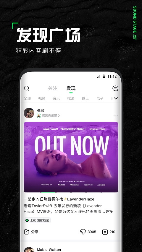 以“圈子”为概念聚集的一大批热爱摇滚、爵士、电子、R&B、嘻哈风格的音乐爱好者,可通过图文、音乐、视频、纯文字、歌单、演出六种类型内容载体平台分享,快速找到志同道合的新朋友。此外,在广场有丰富的音乐频道可供选择,独特的内容分发机制,让好内容能够快速曝光。驻扎聆听的海量音乐,让你不再为听音乐或者因版权问题,辗转各大音乐平台,全网音乐一站听,收集所有你喜欢的音乐,并打造属于你自己的音乐歌单,无限容量听到爽!