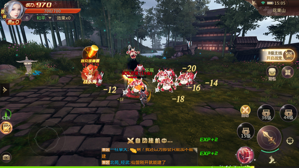 4、点击右下方“自动”,角色还可以自动打怪升级;