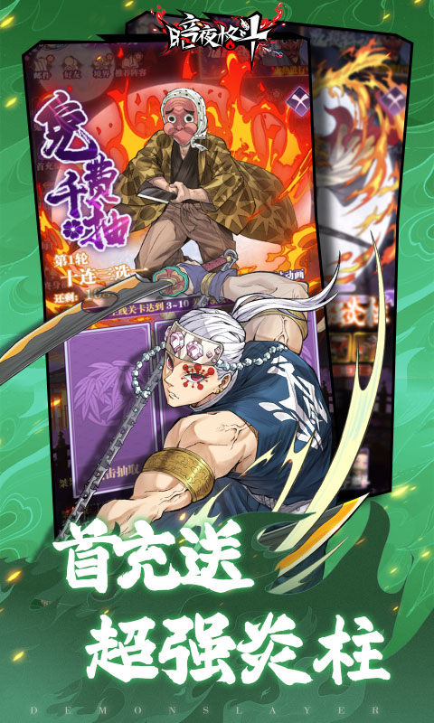 暗夜格斗0.1折免费版是一款非常不错的策略卡牌对战手游,此版本充值0.1折,而且开局就送SSR+寿郎、神装套装等超值好礼,更有免费千抽,核心SSR+队员随便选,让你开局领先一步。同时游戏由超高人气动漫《鬼灭之刃》改编制作而来,玩家在游戏中将扮演一位猎鬼勇士,你需要拿起日轮刀,与队友并肩,在夜幕下与凶恶的鬼怪展开一场惊心动魄的决战。