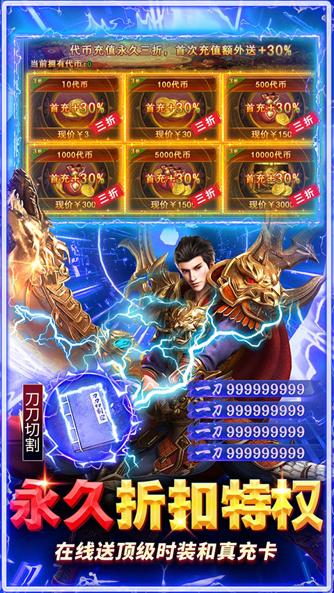 这里给大家带来的是雷霆前线折扣版,此版本拥有0.1充值福利,上线就送四大神威,打怪爆神装,挂机闯关打boss还送真充卡。感兴趣的小伙伴还在等什么,快来开启你的全新的热血征途吧!