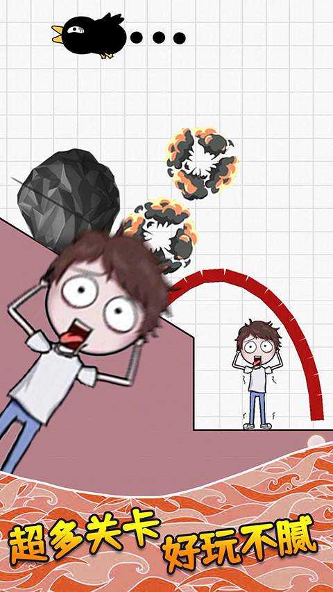 6、进入第五关会有很多东西从上面掉落下来,我们画的毛线需要将整个人物完全罩住,游戏中还有许多关卡等待玩家挑战,以上就是画个毛线营救游戏的玩法了。
