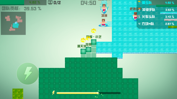 围城大作战是一款很有趣的休闲竞技游戏,画面采用像素风,玩法主要是圈地称王。玩家从一个小领地开始,通过移动角色圈占别人的土地,最后回到起点就能把这片地变成自己的颜色。游戏有两种模式:无尽模式可以无限圈地,限时模式则考验速度和策略。
