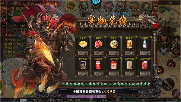2、实物兑换:玩家可以通过打怪掉落的实物来进行回收换金;