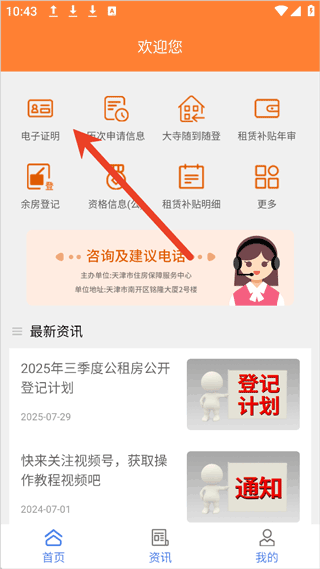 1、打开登录app后进入首页点击【电子证明】