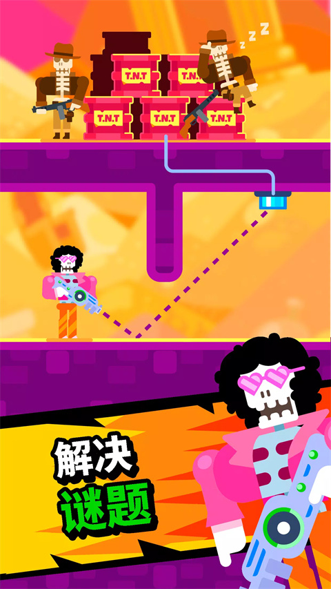 玩法方面,需要动脑筋设计射击角度,有时候一发子弹就能解决战斗,感觉挺考验策略的。游戏里的谜题难度逐渐增加,越玩越有挑战性。不过,虽然要动脑,但不需要太复杂的操作,适合休闲娱乐。我个人觉得这种结合智慧和射击的游戏还挺有意思的,就是不知道关卡难度会不会让人有挫败感,慢慢来吧!