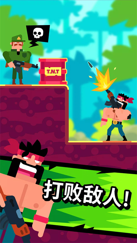 兰博、忍者和其老练的战士准备好要击败坏人了。解锁枪砲英雄的所有成员!