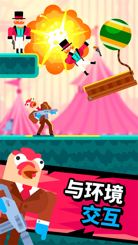 用你的脑袋和不同的武器来完成各种任务。射击子弹或发射榴弹,它们能够弹射、弹跳或飞像坏人的头部。别忘了领取外观,来让你更帅气地完成暗杀!