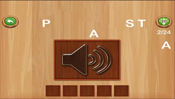字母闯关游戏是一款寓教于乐的英语单词学习趣味闯游戏,可以让孩子们在学习英语的过程中不再感到枯燥,为了让小孩的能听到单词发音,软件还在每道题设置了语音读单词,让孩子清楚知道单词是怎么读的,在完成了单词的拼写后还把朗读这方面技能提高了。目前游戏拥有动物单词、食物单词等多类单词,例如点食物类,会出现对应食物的英语单词字母,按正确的顺序把字母移至相应位置 ,答对即可通关,让用户在游戏中轻松记住单词。