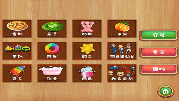 游戏里有好多分类的单词,比如食物、动物这些生活中常见的东西,孩子玩起来应该会更有兴趣。玩法也很简单,选关卡然后按顺序拖动字母到指定位置就能通关,操作起来不复杂,适合各个年龄段的小孩。
