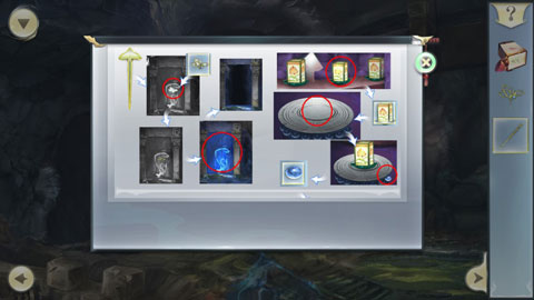 首先在雕像上找到一个玉钗,点击蓝色宝石会卸下一根针。