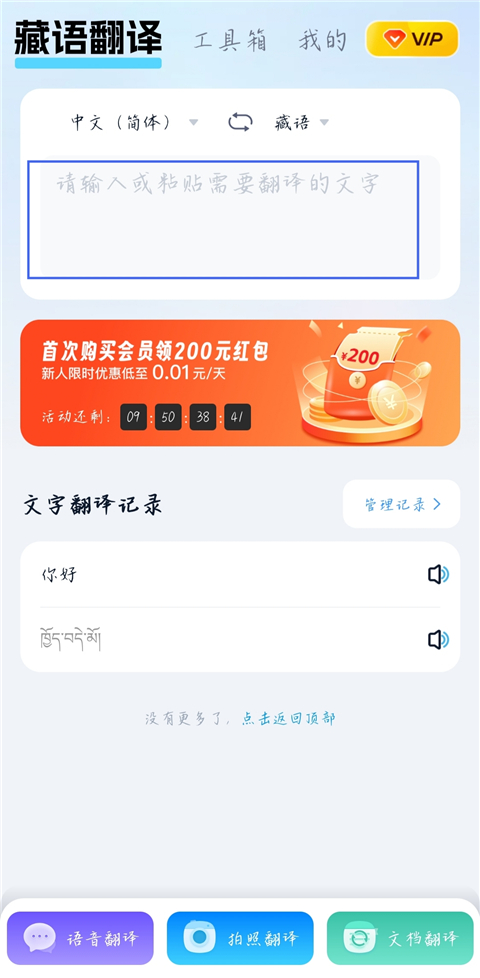 输入框内输入或粘贴文本,一键即可实现藏语与其他主流语言(如中文、英文等)之间的精准互译,方便您在学习、工作或旅行中随时查阅和交流。