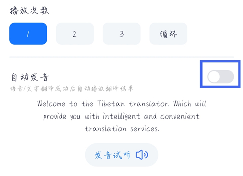 4、还可以选择播放次数,打开自动发音按钮,翻译成功后将自动进行朗读。