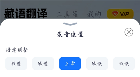 3、进入发音设置界面,用户可将语速调整为极漫、较慢、正常等。