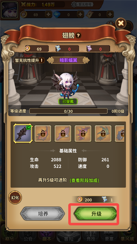 每一阶翅膀升级满级后,需要消耗紫金图纸进行升阶,升阶可获得大量抗性属性提升。