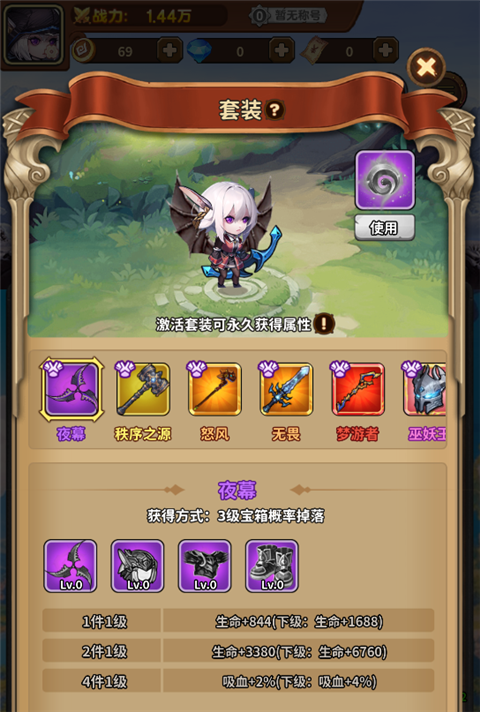 集齐套装即可解锁对应套装的特效件,特效件可以幻化到角色身上。收集套装可以激活对应的套装效果,获得属性加成。