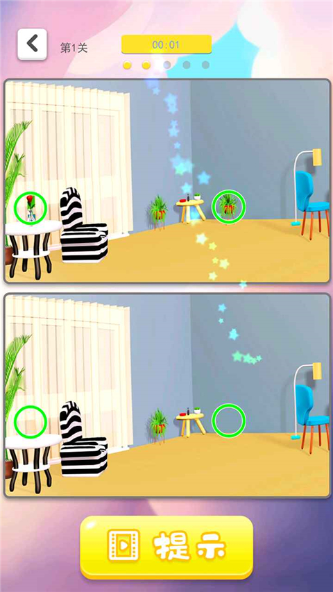 3d找茬是一款休闲益智游戏。玩家将以闯关的方式进行图片找茬,通过关卡中给出的场景找出其中不同的地方即可通关,需要在时长为一分半内寻找出,否则则判定失败。游戏中随着关卡提升难度越来越难,场景中的物品也将变复杂,非常考验玩家的专注力以及识别能力。支持360°旋转场景中,通过动态视角比对两幅看似相同的立体画面,找出隐藏的细微差异,快来试一试看你可以通过多少关!