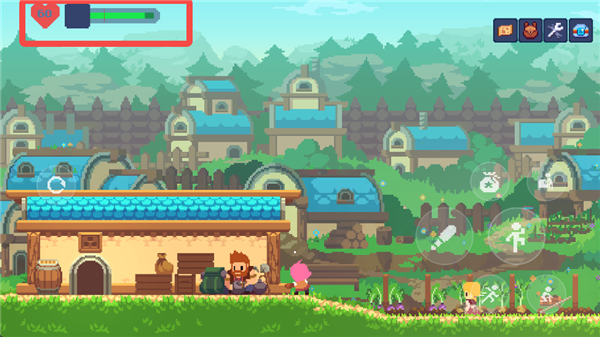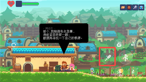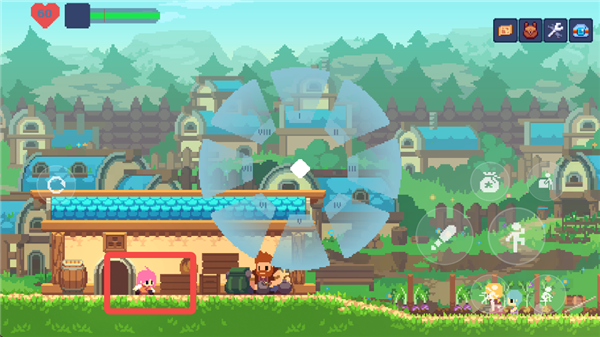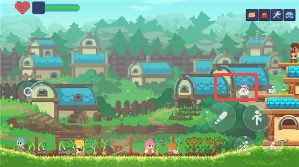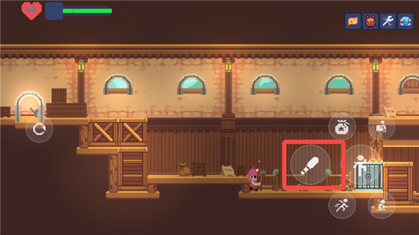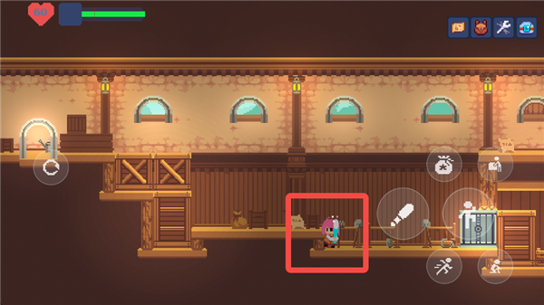 游戏的主交互键位于右侧按键的最上方,和NPC以及场景的交互都是依靠这个按键完成。在这个形态下,按下互动键和方向键则可以拖动一些场景内的箱子,从而跳到更高的地方。