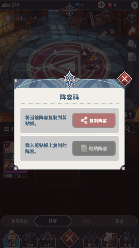 4、【阵容码】界面点击【粘贴阵容】按钮。