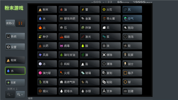 游戏中玩家能够在游戏中模拟这世上的一切,小到一个蚂蚁,大到一颗星球。只要你的想象力够丰富,你可以创造一切可想象之物。还能够自制关卡,这应该说是最有特色的地方了,当然你也可以选择去玩别人制作的关卡,相当有魔性的一款游戏,没有谁知道粉末遇到一些固体、液体之后会产生什么变化,你可以用火焰做出武器、也可以用炸弹做出火山喷发和水山喷发,甚至还能制作出人物来,很多可爱又有意思的玩法等你来挖掘。