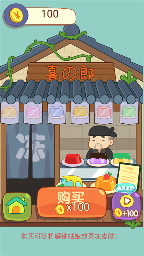 用收集的金币在果冻店买入果冻,获得新的女孩形象,达成成就解锁新的果冻背景,体验收集的乐趣吧。