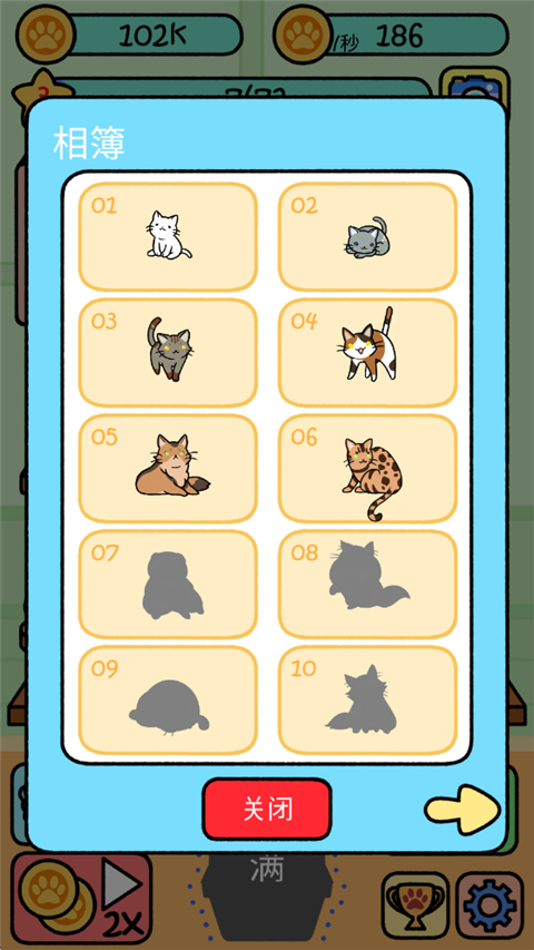 3、拥有超过40中不同的猫咪,收集到全部的猫咪后,还可以解锁隐藏的游戏奖励。