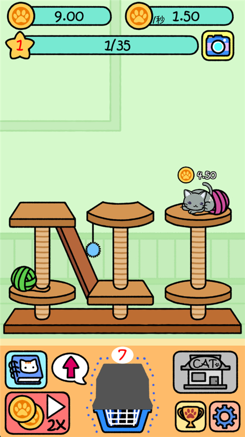 操作也超级方便,点点屏幕就能完成所有动作。尤其是合成系统,让我体验到了“赛博撸猫”的快乐。看着自己的猫咪阵容一点点壮大,真的有种收集卡片一样的满足感。而且游戏里有超过40种不同的猫咪,每次解锁新品种都像是在拆盲盒,期待感十足。