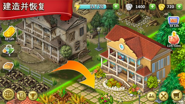 游戏中有超大的地图等待探索,各种经营项目让你发挥创意,比如种地、伐木、采矿等,还能扩建农场建筑,提升盈利能力。游戏的玩法非常丰富,既有种植作物的成就感,又有经营农场的乐趣,让人欲罢不能。特别是当你看着自己的农场从一片荒地变成繁荣的庄园时,那种满足感真的很难形容。