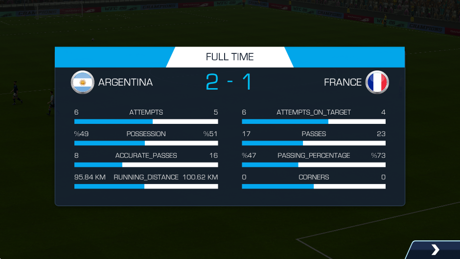 8、随后还能看见双方球队的相关数据,帮助玩家更好的提升自己的技术。