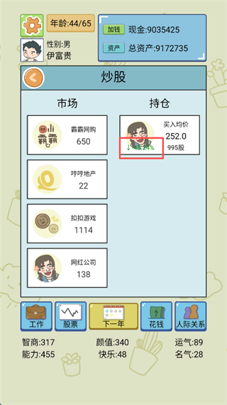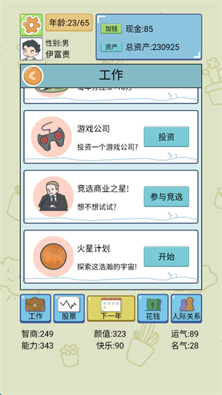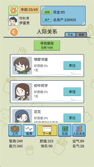 最让我觉得有意思的是人际关系经营这个设定,你不仅要面对自己的成长,还要处理与亲人、朋友的关系。这种设计让人觉得游戏不仅仅是一个简单的娱乐工具,更像是一个人生的实验场。尤其是通过炒股、投资这些经济活动来赚取收益,也挺考验策略的。