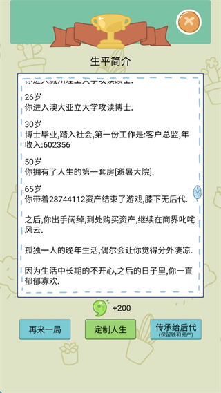 设计了20多种职业路线和100多个随机事件,玩家可自由选择职业,如程序员、网红等,还能体验恋爱、结婚、育儿等人生环节。
