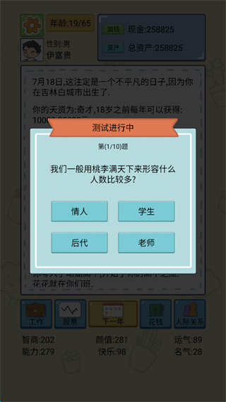 5、前17年就是17个选项,玩家可以根据选项来提升自己的各项属性。