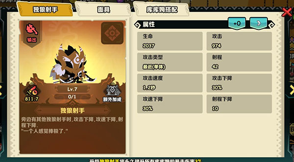 独狼射手是输出很可观的库库姆,但是它的机制限制了旁边如果有其他的独狼射手,他的输出就会全面下降。