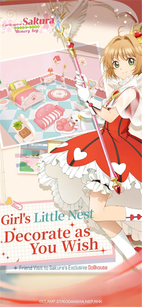 收集养成小小樱,一步步解锁各种造型小小樱的专属pose,装点自己的个性小屋空间。【装修娃娃屋,打造个性房间】小小樱、库洛牌化身小屋摆件,装点个性风格娃娃屋。获得风格多样的家具,DIY专属“少女心小基地”。