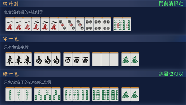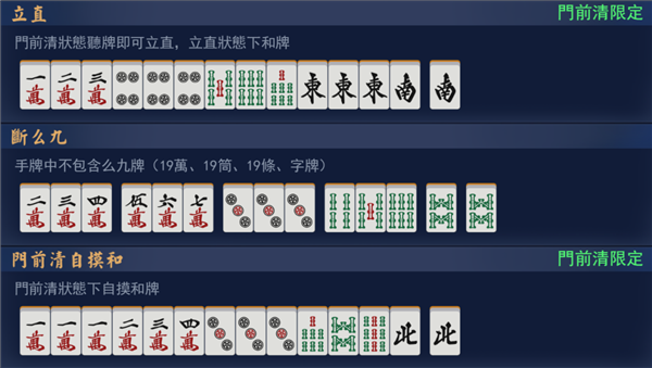如果达到之前说的牌型就能和就太简单了,还需要有役才能和。役就是特定牌的组合,不满足任何役的牌是无法和的。