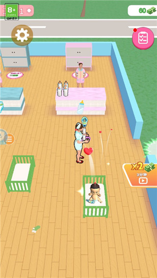 带娃模拟器是一款模拟经营游戏。玩家在游戏中经营一个托儿所,通过照顾宝宝来获取金钱,通过赚来的钱来增加床位、扩建场所、雇佣职员。玩家还可以花费金钱来升级个人和职员的能力,通过合理的配置和升级,扩大托儿所的规模,提高托儿所的工作效率,服务更多的顾客!游戏玩法易上手,只需要移动获取相应物品服务小宝宝后,等待大人来付钱即可建设更多内容。